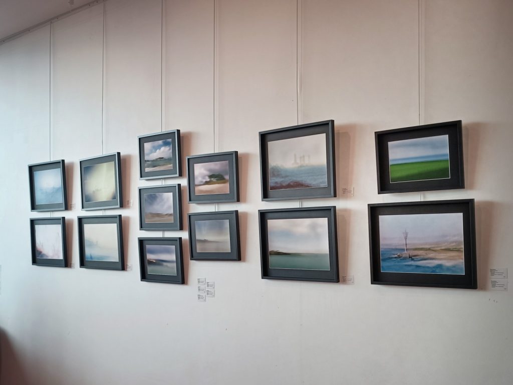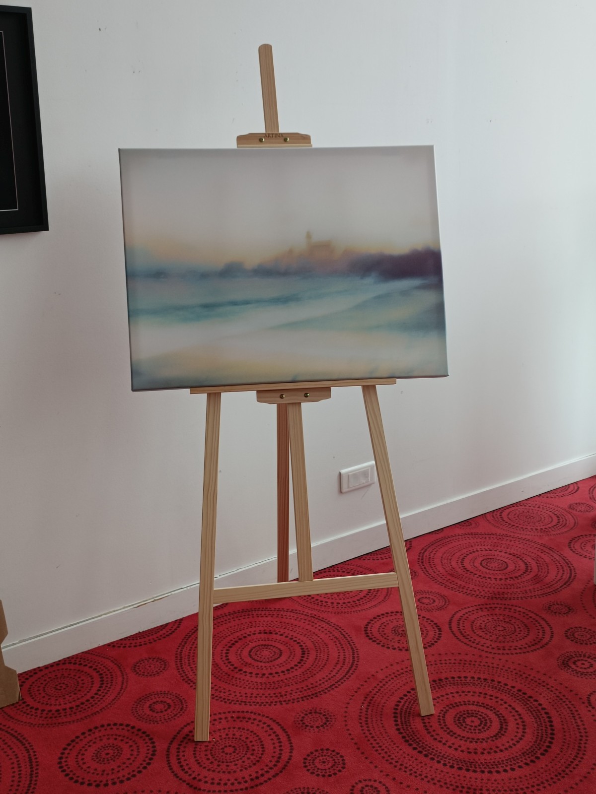 J'ai préparé 2 photos : "Paysage d'aquarelle" et "Vers la pointe". La présentation sur chevalet, associé à cette matière textile, renforce l'impression d'être en présence d'une peinture, et non d'une photo.