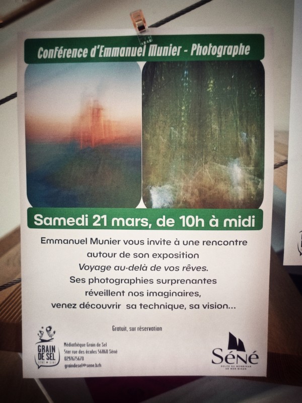 Par ailleurs, une médiation avec le public est prévue le 21/03. Elle prendra la forme d'une conférence pendant laquelle j'expliquerai ce qui m'a conduit à adopter ce style de photo, et le but que je recherche. Je parlerai assez peu de la technique, mais il sera difficile de passer à côté du sujet sans l'aborder un minimum.