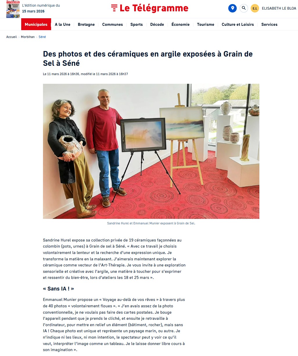Le centre culturel de Séné, Grain de Sel, m'accueillera du 11 mars au 3 avril 2026 pour une exposition baptisée "Voyages au-delà de vos rêves".